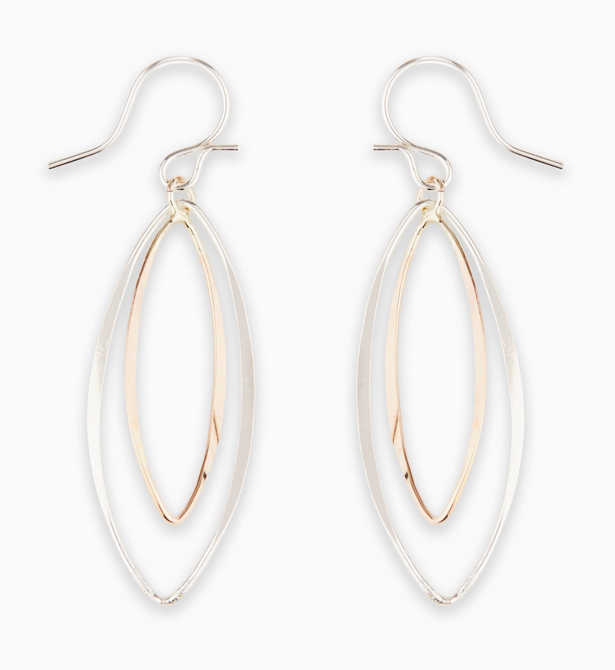 Handcrafted with care, these dangle earrings features two linked ovals for a unique and artistic touch. Elevate any outfit with this exquisite handmade accessory.