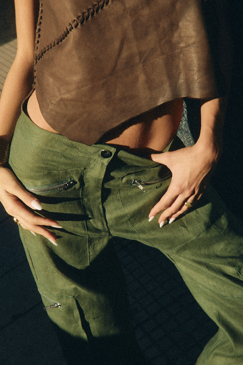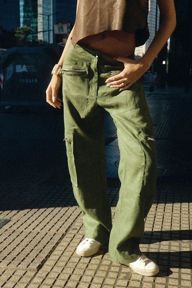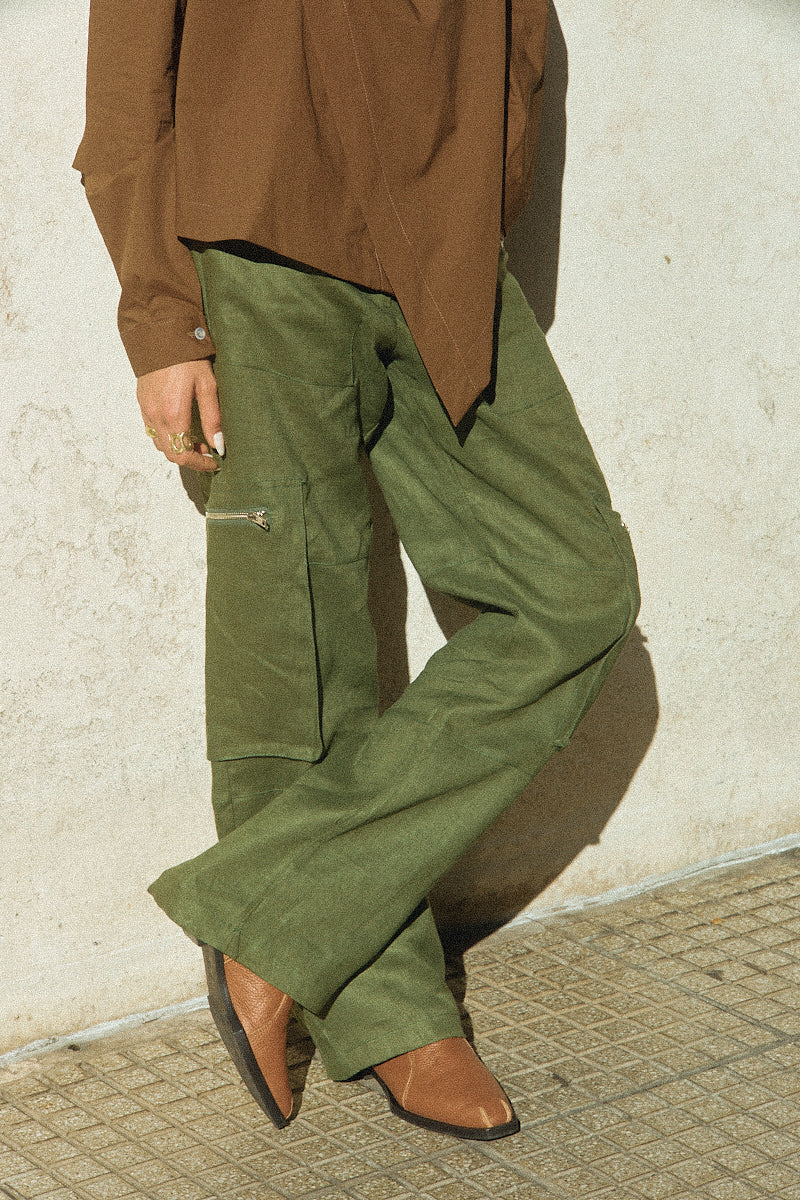 These trousers are made from fine linen, with matching pockets and zippers creating a flattering cut. The pockets are functional.