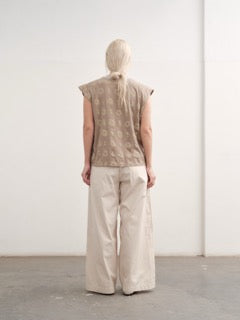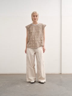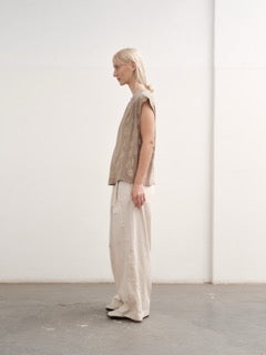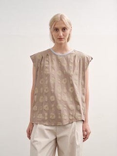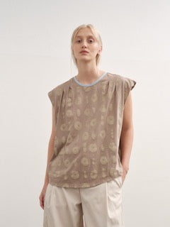 - Sleeveless top with a round neckline. Loose and relaxed fit.