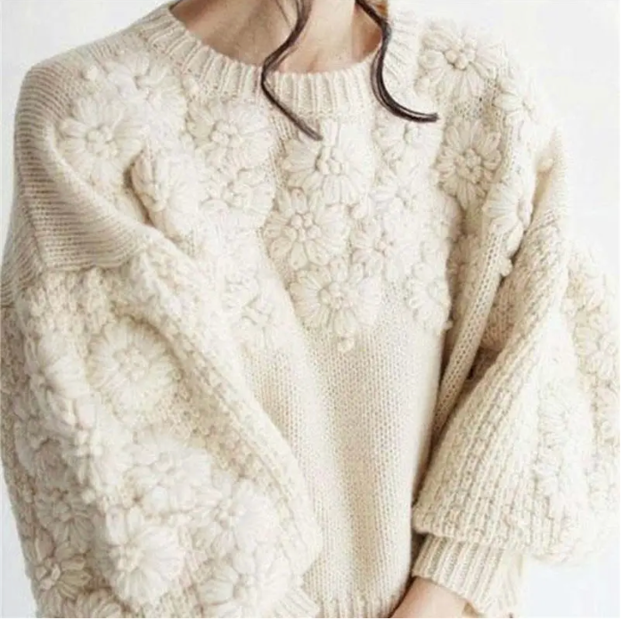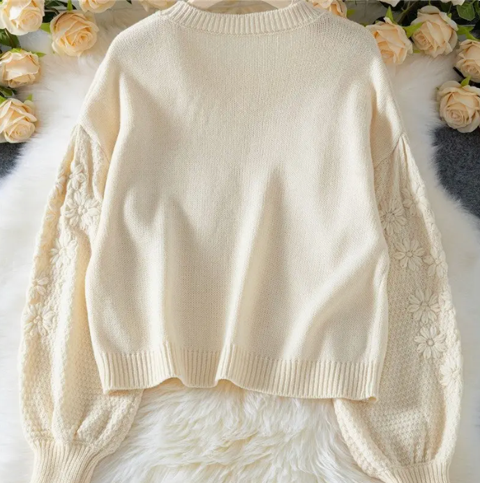 EMBROIDERED DAISY KNIT SWEATER